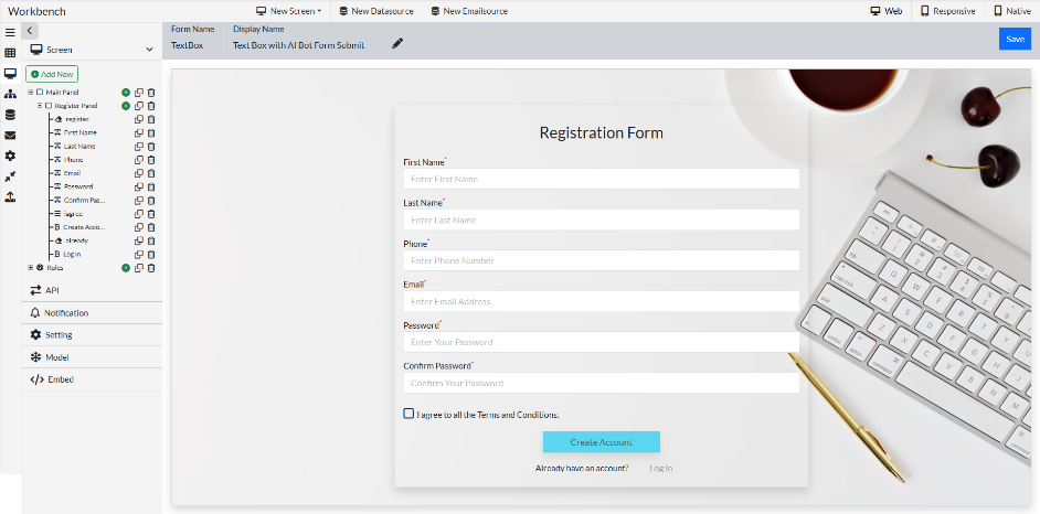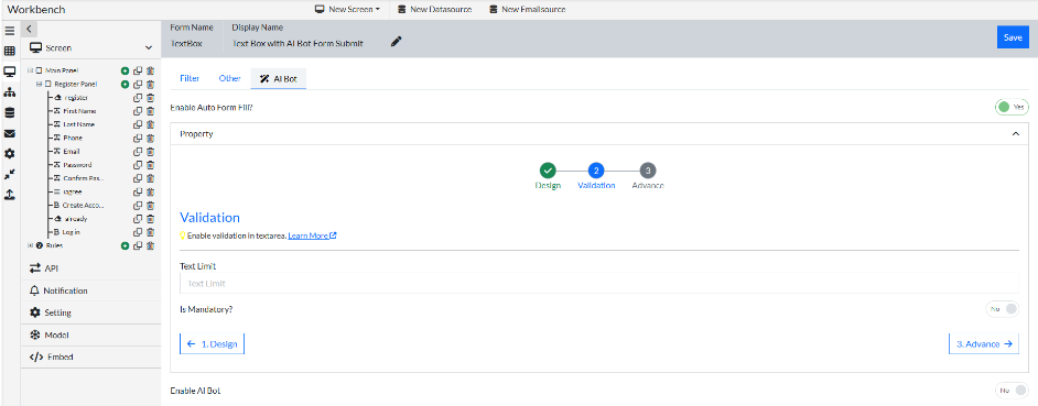 - Configure all the attributes in design page based on the specified requirements of the form.