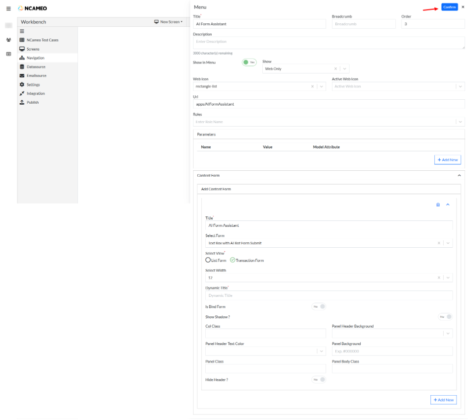 - After confirmation, the form is added and listed in the left-side navigation menu.