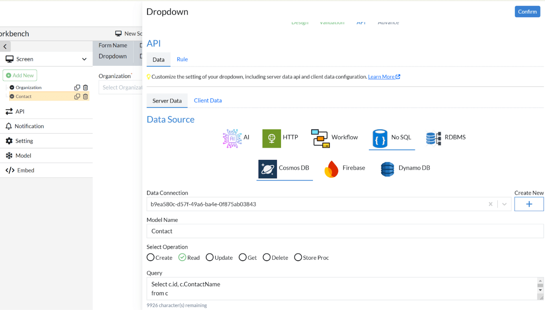 Click Confirm to save the dropdown configuration.